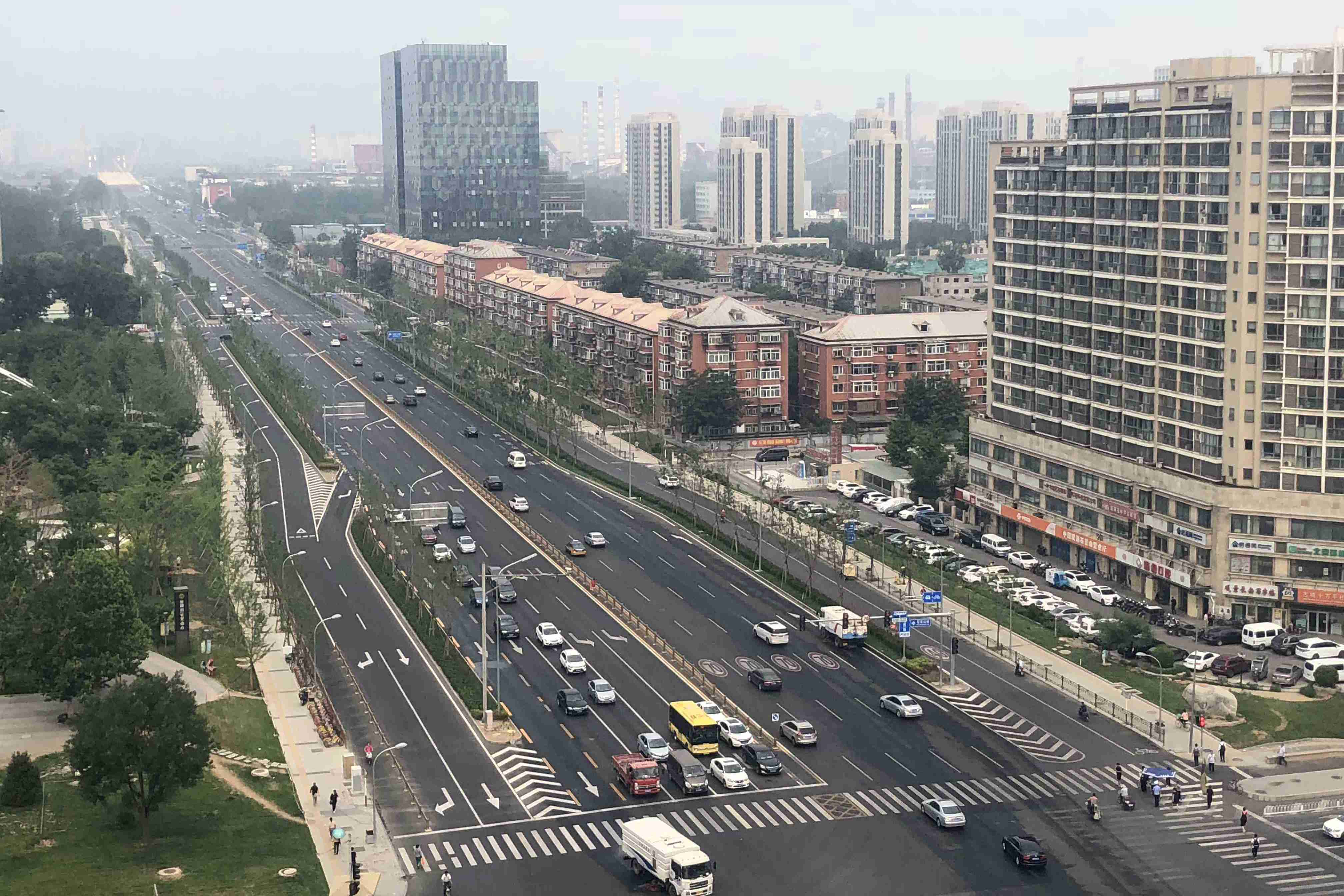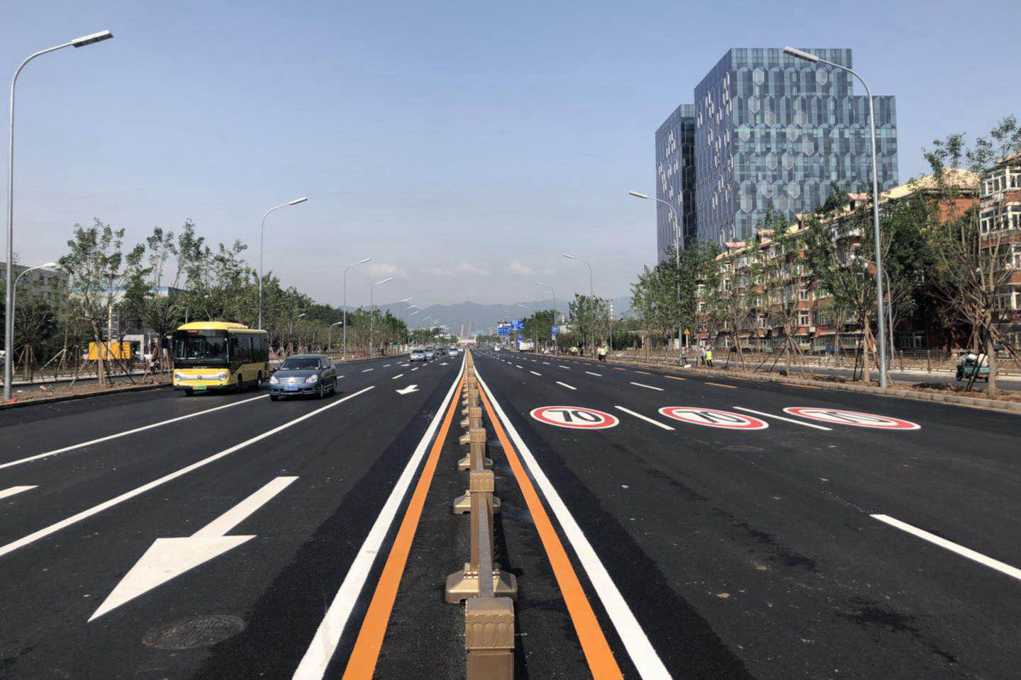 長安街西延線工程東起石景山區(qū)古城大街,向西經(jīng)首鋼主廠區(qū)、上跨豐沙鐵路、永定河及六環(huán)路至門頭溝區(qū)三石路,全長約6.4公里。長安街西延工程道路標(biāo)準(zhǔn)為城市主干路,紅線寬60至100米,古城大街至六環(huán)路西側(cè)路安排4上4下8條機(jī)動車道,包括外側(cè)兩條公交專用車道,六環(huán)路西側(cè)路至三石路為包含兩條公交專用道的3上3下6條機(jī)動車道。長安街西延道路橫跨永定河,新建跨永定河特大橋一座。長安街西延道路的輔路系統(tǒng)及雨水、綠化、照明、交通工程、環(huán)保、工程改移等工程同步實施。長安街西延跨永定河大橋景觀性標(biāo)志建筑——雙塔斜拉和剛構(gòu)組合體系橋“和力之門”,橋梁全長1230米,斷面寬度47米,橋梁總面積5.82萬平方米。